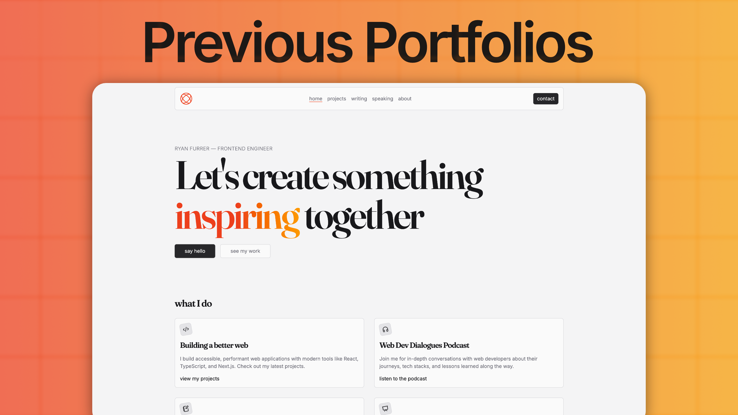 I have a habit of making new portfolios every few years as they tend to be my playground for learning new things. Here is a growing collection of all my previous ones.